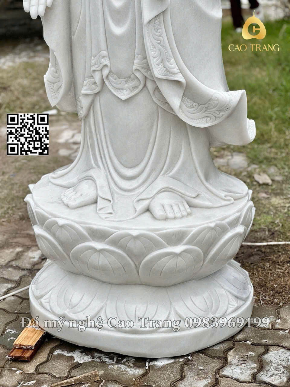 Mỗi đường nét của tượng được nghệ nhân làng đá Non Nước – Đà Nẵng tạc thủ công hoàn toàn, thể hiện “thần – tướng – khí” chuẩn mực.