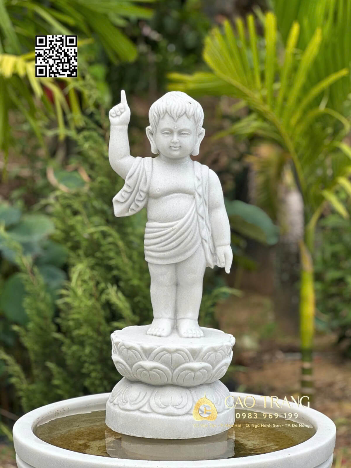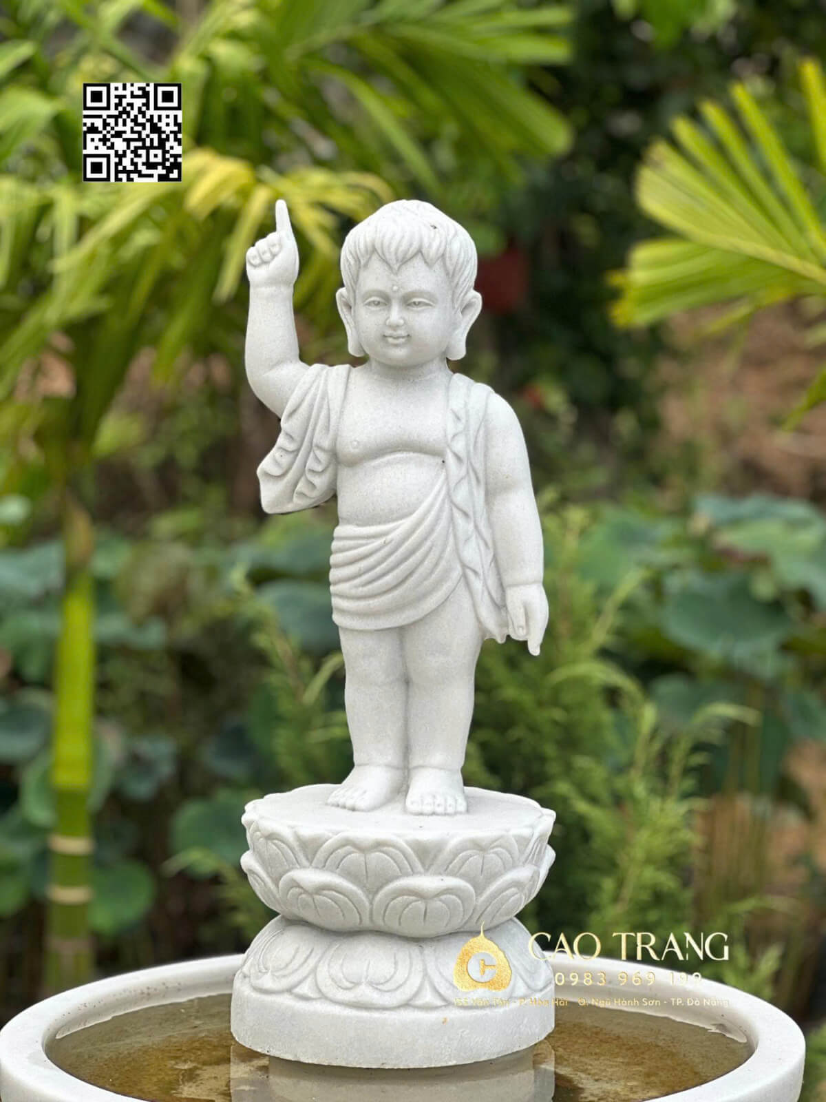Tượng Phật Đản Sanh cao 80cm bằng đá tự nhiên là biểu tượng thiêng liêng của ngày Đức Phật Thích Ca Mâu Ni giáng trần, khởi nguồn con đường giác ngộ và từ bi vô lượng.