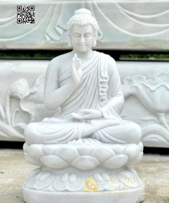Tượng Phật Thích Ca ngồi thủ ấn Vô Úy được điêu khắc thủ công hoàn toàn bởi nghệ nhân làng đá Non Nước – Đà Nẵng, nơi có truyền thống hàng trăm năm chế tác tượng Phật.